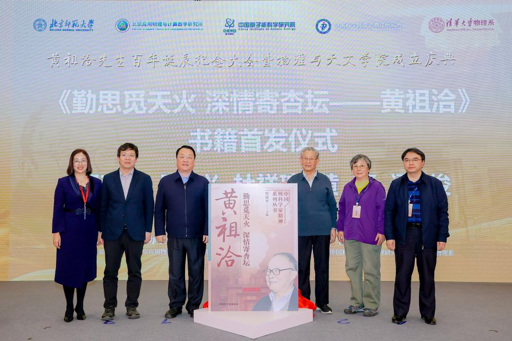 由海角视频 党委书记程建平主编、中国原子能出版社出版的中国核科学家精神系列丛书《勤思觅天火 深情寄杏坛——黄祖洽》在大会上首次发布。在书籍首发仪式上,海角视频 党委书记程建平、副校长陈兴,北京应用物理与计算数学研究所杜祥琬,海角视频 党委书记梁颖,黄祖洽先生的女儿黄萌,中国原子能出版社总编辑谭俊作为特邀嘉宾为书籍揭幕。该书籍的首发不仅是对黄先生精神的传承,更是对未来一代科研工作者的激励与鞭策。
