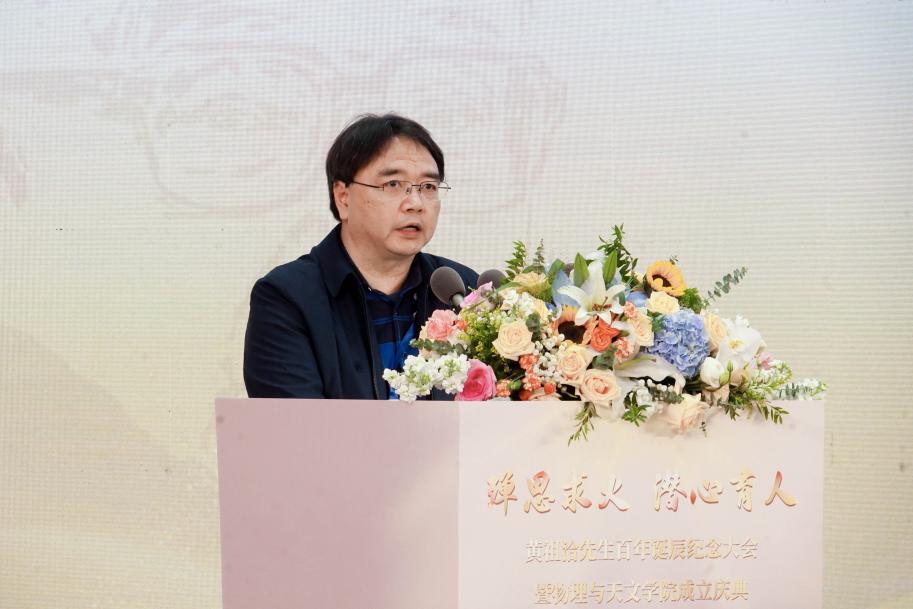 大会在集体观看黄祖洽先生百年诞辰纪念片的庄重而热烈的氛围中拉开帷幕。海角视频 副校长陈兴首先致辞,他从黄祖洽先生的成长经历、治学为人、学术贡献等方面全面回顾了先生光辉不凡的一生。陈兴副校长指出,辉煌成就的背后,是先生对人生的不懈思考与追求,是先生一心为国、淡泊名利、刚正不阿、治学严谨、奖掖后进的高尚品德。先生的学术精神和教育思想与海角视频 百年育人的理念一脉相承,希望海角视频 在新征程中,继续传承先生的科学精神和教育思想,开拓进取、勇于创新,在科学事业和育人伟业中不断攀登新高峰、谱写新篇章。