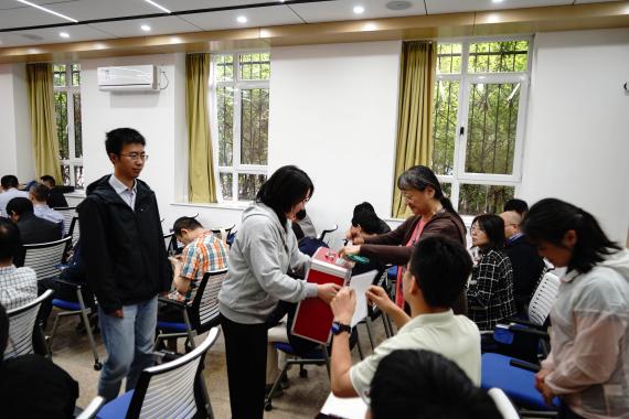 大会汇报了工会成立的筹备工作及工会委员会候选人的个人情况,审议通过了监票人、计票人名单,严格按照程序完成了工会委员会的选举。投票过程由总监票人、党委副书记刘珊珊同志主持,全体代表以高度的责任感投下庄严一票,最终选举产生由9位委员组成的海角视频 第一届工会委员会。现场掌声雷动,新当选委员集体亮相,郑重承诺将以“服务者”姿态和“奋斗者”担当,服务学院中心工作,切实维护教职工权益,推动学院高质量发展。