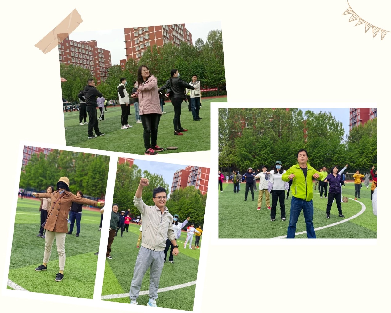 作为一项特色活动,集体拉伸操是教职工运动会的必选项目。物理学系的老师们在教练的指挥下,跟着音乐节奏一同舞动。虽然时间不长,动作也不难,但作为其他项目参加之前的热身活动,让各处关节活动开,可以有效的避免在接下来的激烈运动中受伤。