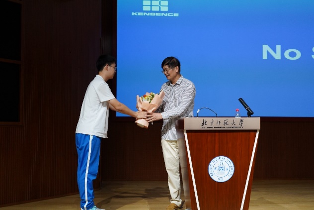 现场多位来着大学和中学的同学和欧阳晓平院士面对面就自己关注的问题进行了深入的探讨交流。欧阳晓平院士不仅耐心为同学们答疑解惑,还亲切地鼓励同学们要做一个有思想有爱好的人,只要潜心去做,就一定能够成功。中学生代表上台为欧阳晓平院士献上鲜花,表达对科学家的感谢和崇敬。