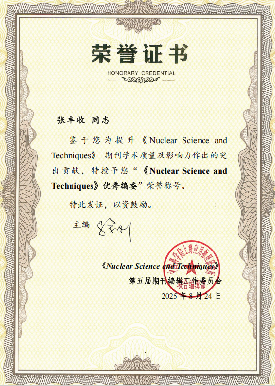 张丰收老师团队荣获《Nuclear Science and Techniques》期刊 2024年度“优秀论文”与“优秀编委”称号