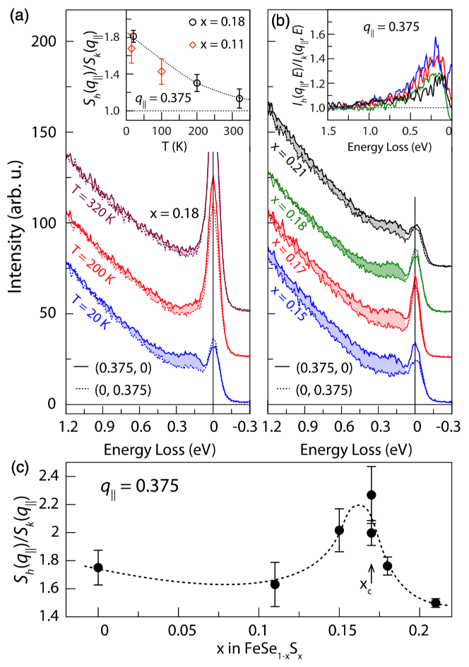 近日,物理学系鲁兴业教授课题组基于自主发展的单轴应变装置,采用共振非弹性X射线散射(RIXS)技术研究了铁基超导体FeSe1-xSx中的自旋激发谱,发现在单轴应变下,自旋激发各向异性(向列自旋关联)在FeSe1-xSx的相图中广泛存在,该结果为向列自旋涨落驱动的电子向列相提供了新的实验证据。