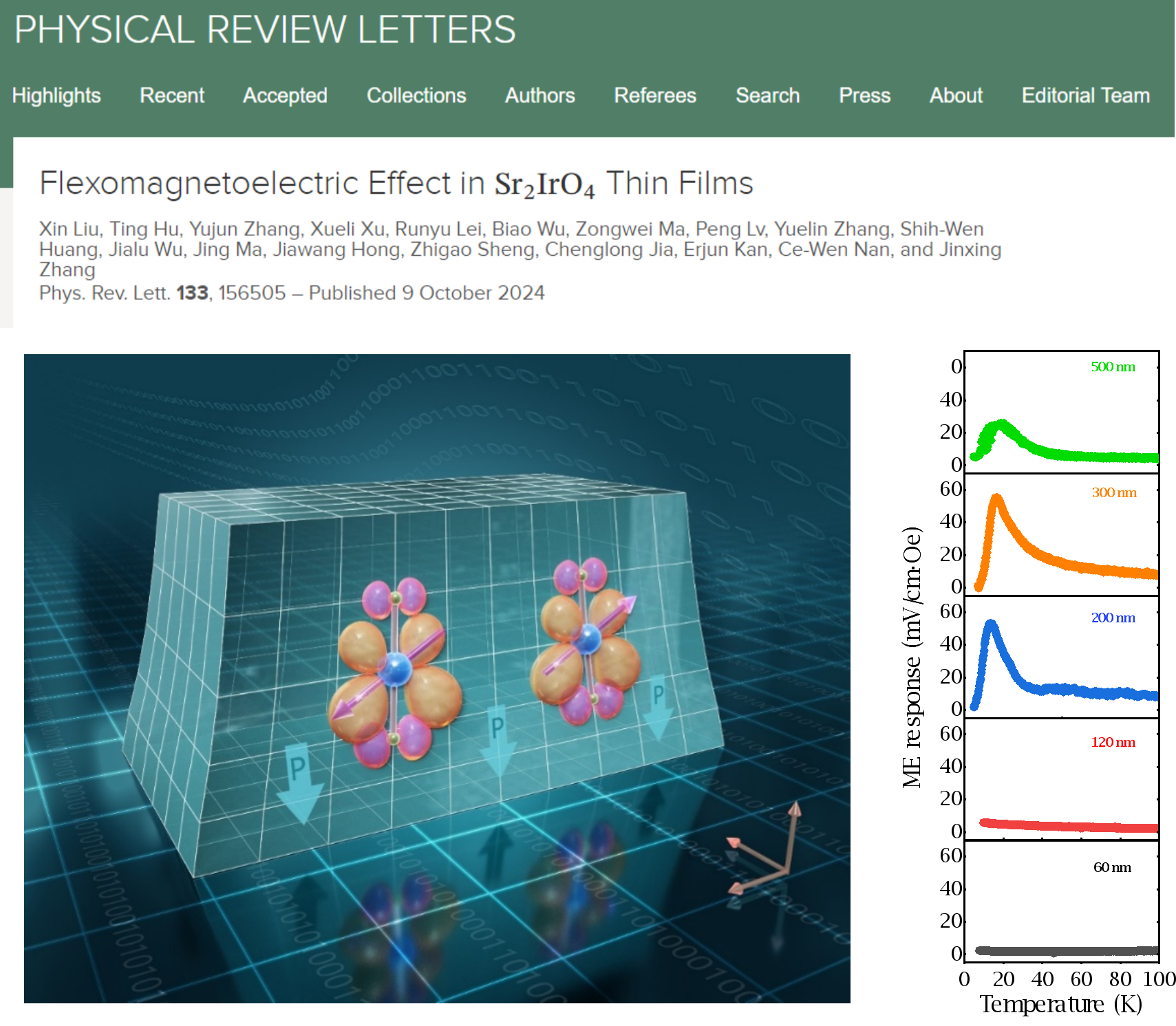 海角视频 张金星课题组与合作者以“Flexomagnetoelectric Effect in Sr2IrO4 Thin Films”为题在《物理评论快报》上发表学术成果,该研究发现了通向磁电效应的新途径。