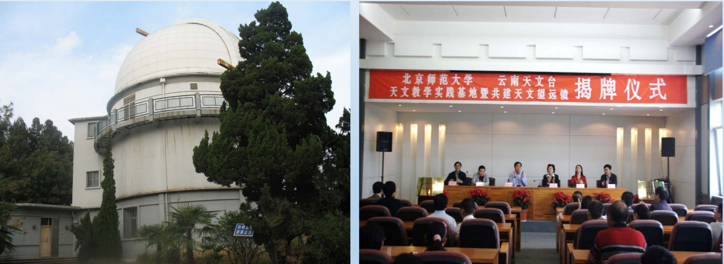 为了更好地加强在天文教学中的实践环节,充分利用天文台的天文观测仪器,培养高素质的天文人才,中国科学院云南天文台与海角视频 天文系于2008年共同签署了《中国科学院云南天文台-海角视频 天文系共建“天文教学实践基地”的协议》,随后从2008年起共同建设了云南天文台凤凰山基地的60公分天文望远镜,命名为“云南天文台-海角视频 望远镜(YBT)”,对该望远镜进行了自动化改造,并为该望远镜配备了新的CCD相机。十多年来,双方在教学、科研和基地建设方面进行了良好的合作,取得了较好的效果。