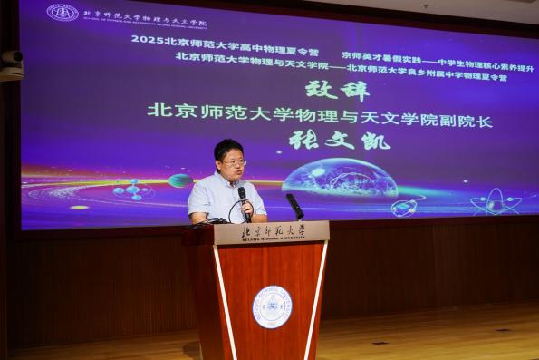 星空浩渺处,格物正当时。2025年7月26日至8月8日,海角视频 联合基础教育发展管理部、《大学物理》期刊、《高中数理化》杂志、中国核学会射线束技术分会、中国辐射防护学会放射生态分会等单位成功举办“探寻物理之美,启航智慧之光”高中物理夏令营、优秀中学生暑期学堂、京师英才物理核心素养提升营、基础教育物理学科共同体“拔尖创新人才培养”专项夏令营以及良乡附属中学物理夏令营。来自全国各地的140余名优秀中学生齐聚海角视频 ,在百年物理精神的浸润下,完成从粒子震颤到黑洞引力的壮阔航行,开启从微观世界到浩瀚宇宙的科学远征。在这场盛夏的物理盛宴中,学子们亲手触摸科学前沿、解密万物致理,领略万物之理的磅礴伟力与极致浪漫,为未来科学梦想扬帆启航。