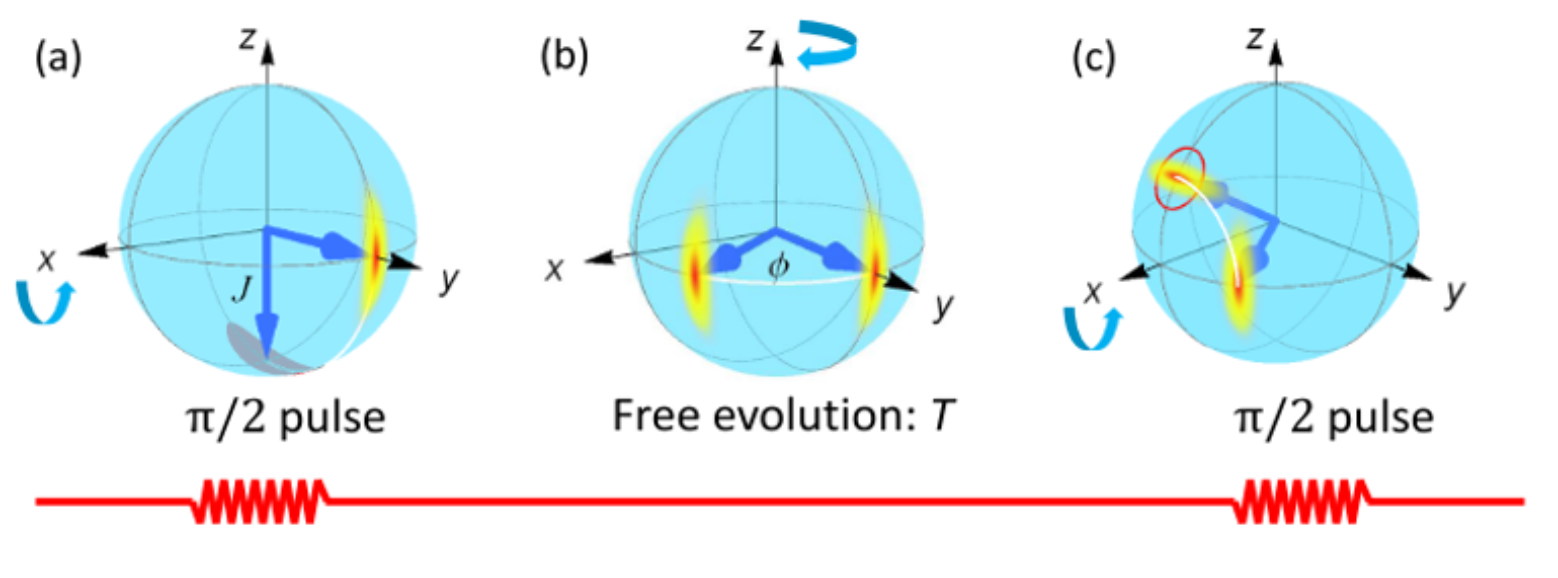 现在我们回到真实的物理体系当中,去体验物理学家是如何提升测量精度的。以光学上的拉姆齐干涉仪为例,想要测量体系哈密顿量