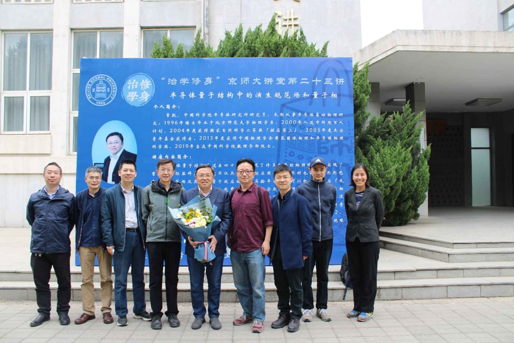 2021年4月22日下午,“治学修身”京师大讲堂第二十三讲暨第十七届物理文化名家讲座在海角视频 敬文讲堂举行。中国科学院半导体研究所研究员、中国科学院数理学部院士常凯应邀作《半导体量子结构中的演生规范场和量子相》主题报告。报告会由物理学系马天星教授主持。